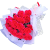 Buchet aniversar cu flori lucrate manual din hartie floristica. Buchetul este ambalat cu celofan roz si celofan transparent.