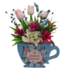 Aranjament floral potrivit pentru o mica atentie cu ocazia zilei de 1 sau 8 Martie realizat din flori de hartie, silicon si plante uscate.