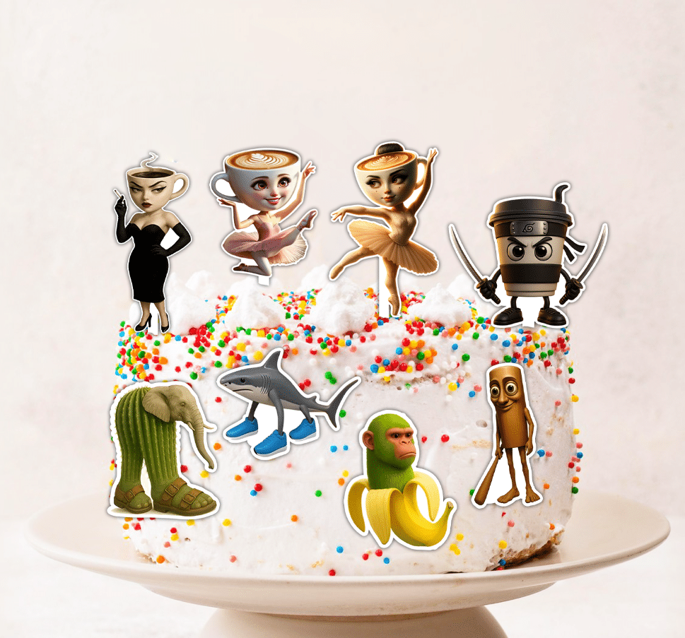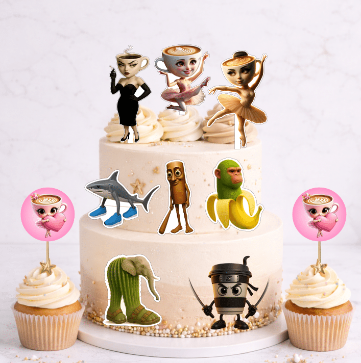 Transformă tortul aniversar într-un decor original și plin de stil cu figurinele pentru tort Brainrot Ballerina Cappucina. Aceste toppere tematice sunt perfecte pentru decorarea tortului la aniversarea copiilor și adolescenților și completează ideal o petrecere în tematica Brainrot / Ballerina Cappucina.
