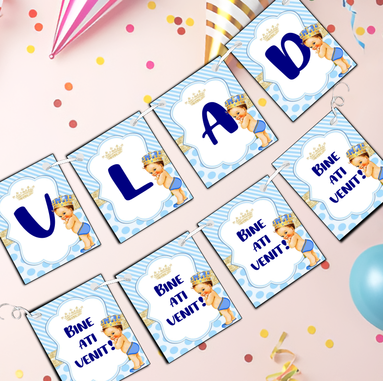 Accesoriu pentru botez sau petrecere tematica – Micul Print, confectionat din carton 250gr imprimat.