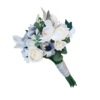Compozitie buchet: trandafiri, boboci, anemone, orhidee, verdeata. Paleta culori: alb, argintiu, verde.