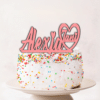 Accesoriul pentru tort are dimensiune aproximativa de 16 x 15 cm cu tot cu bat. Dimensiunea poate sa varieze in functie de lungimea prenumelui (un singur prenume).