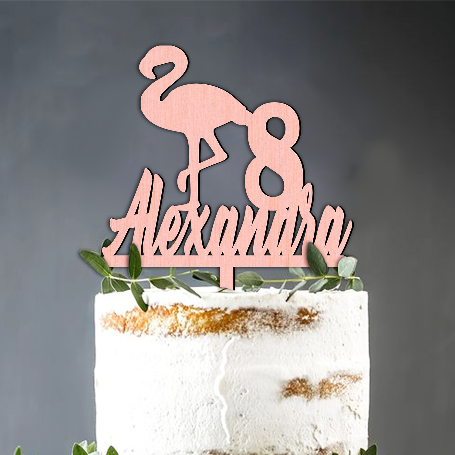 Accesoriul pentru tort are dimensiune aproximativa de 15 x 20 cm cu tot cu bat. Dimensiunea poate sa varieze in functie de lungimea prenumelui.
