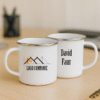 ☕ Cană metalica emailata de 360 ml, personalizată cu logo pe fata si nume pe verso. Ideală pentru companii, evenimente corporate și domeniul HoReCa.