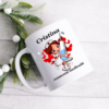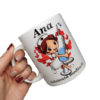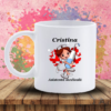 Cana imprimata cu imagine si personalizata cu nume. Textul este imprimat pe ambele parti ale canii.