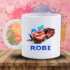 Cana personalizata cu nume – tematica masina raliu. Desenul este imprimat pe ambele parti ale canii. Savureaza bautura preferata intr-o cana personalizata cu numele tau. Potrivita pentru cadou copii sau adulti pasionati de masini.