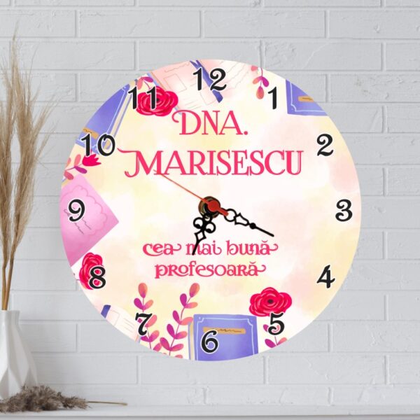 Stilat și versatil, acest ceas personalizat este perfect pentru orice încăpere, devenind piesa centrală și un cadou minunat pentru diriginte, profesori, educatoare sau învățătoare. Personalizat cu numele lor, acest ceas devine o amintire prețioasă a anului școlar și o expresie de recunoștință și apreciere pentru angajamentul și dedicarea lor în educarea și îndrumarea elevilor. Indiferent dacă este amplasat în biroul lor sau în sala de clasă, acest ceas personalizat adaugă o notă de eleganță și rafinament, semnificând impactul lor semnificativ în viața elevilor. Este un cadou deosebit și memorabil, care va fi apreciat și prețuit de către cei care au contribuit la educația și dezvoltarea copiilor noștri.