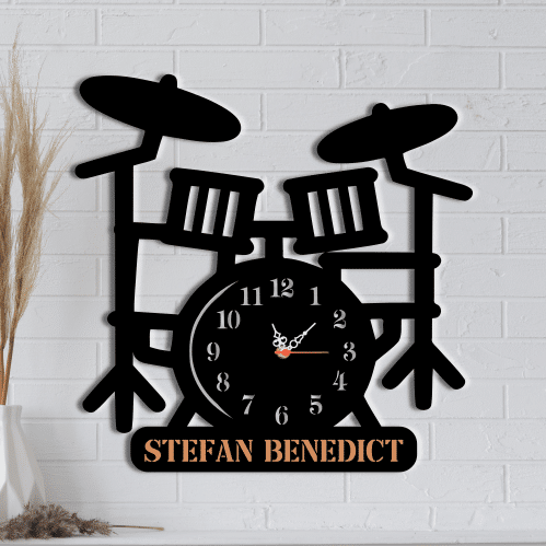 Stilat și versatil, acest ceas de perete personalizat se potrivește perfect în orice încăpere. Atrage privirile prin designul său personalizat și se integrează armonios în orice decor, fiind un cadou ideal pentru tobosari, pasionatii de muzica sau studio-uri din industria muzicala.