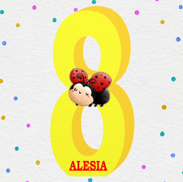 Cifre aniversare din polistiren 15 cm grosime, vopsit manual, personalizate cu nume si print aplicat – tematica Buburuze