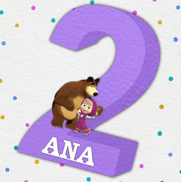 Cifre aniversare din polistiren 15 cm grosime, vopsit manual, personalizate cu nume si print aplicat – tematica Masha si ursul.