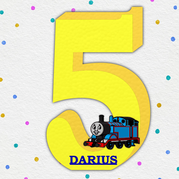 Cifre aniversare din polistiren 15 cm grosime, vopsit manual, personalizate cu nume si print aplicat – tematica Thomas.