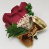 Pentru a plasa comanda selectati tipul dorit: floare simpla, floare + cocarda lemn sau floare + cocarda oglinda acrilica auriu/argintiu. Pentru cocarda floare simpla selectati tipul fara cocarda gravata, pentru cocarda gravata selectati tipul de cocarda dorit, introduceti textul pentru personalizare in caseta de text, selectati cantitatea dorita, dupa care apasati butonul „Adauga in cos”.