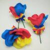 Cocarde din flori de hartie lucrate manual, realizate special pentru a completa tinuta eleganta a invitatilor de la nunta.