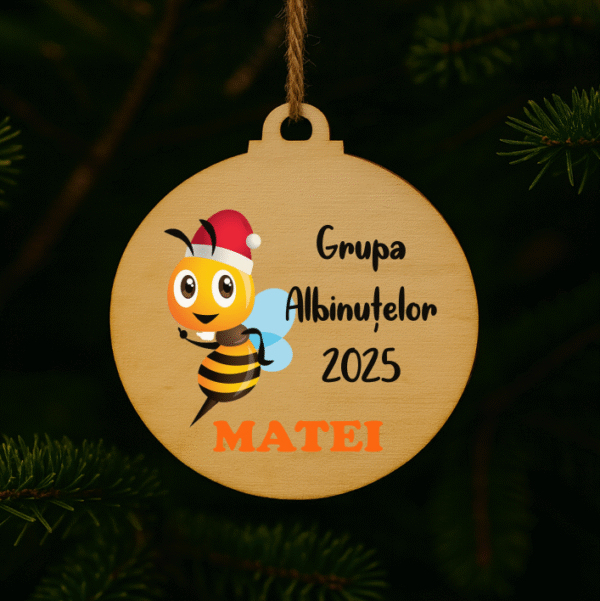 Glob lemn personalizat cu nume confectionat din placaj lemn 4mm grosime, imprimat prin print UV direct pe lemn pe o singura parte. Produsul se livreaza in ambalaj de celofan transparent.