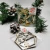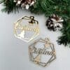 Glob in forma de hexagon realizat din placaj lemn 4mm grosime, personalizat cu nume. Produsul se livreaza in ambalaj de celofan transparent conform model afisat.