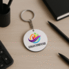📍 Insignă personalizată cu logo, ideală pentru firme, evenimente corporate și campanii promoționale. 5 cm diametrul, agrafa de prindere atasata pe verso, confectionata din HDF alb cu print rezistent UV.