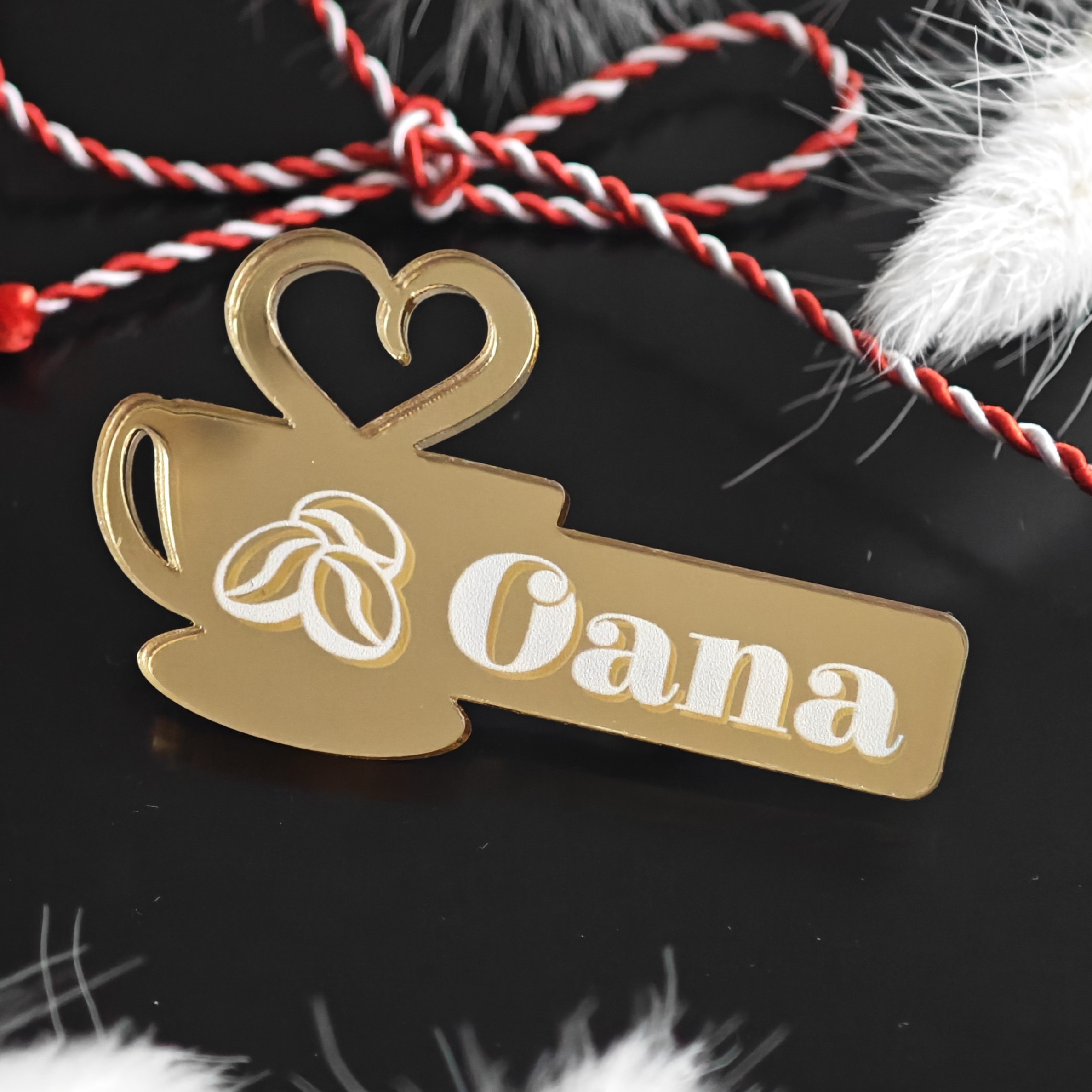 Alege un ecuson elegant, personalizat, realizat din oglinda acrilica aurie, care poate fi purtat atât ca insignă, cât și ca mărțișor cu prilejul de 1 Martie sau 8 Martie.