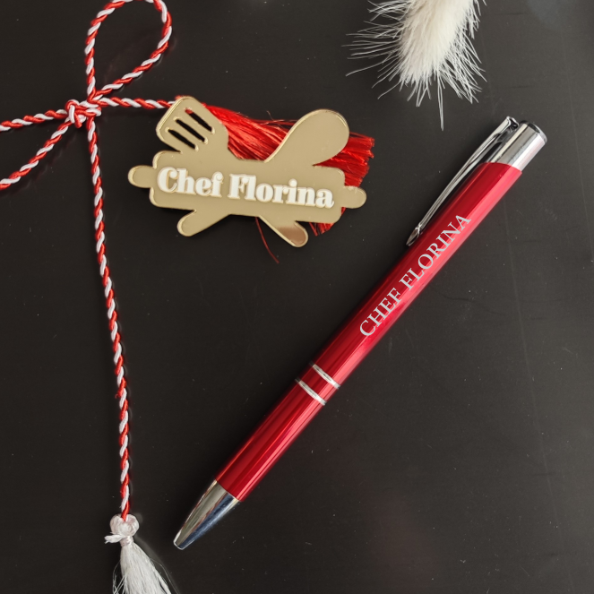 - 🎁 set cadou cu insignă ➕ pix metalic roșu, gravat cu același nume.