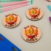 Dimensiune 5 cm diametrul; Agrafa de prindere atasata pe verso; Material HDF alb cu print rezistent UV.