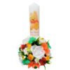 Lumanarea este accesorizata cu dantela alba, perlute si panglica de saten roz. Aceasta se poate personaliza cu numele copilului si data nasterii sau a evenimentului (dupa caz).