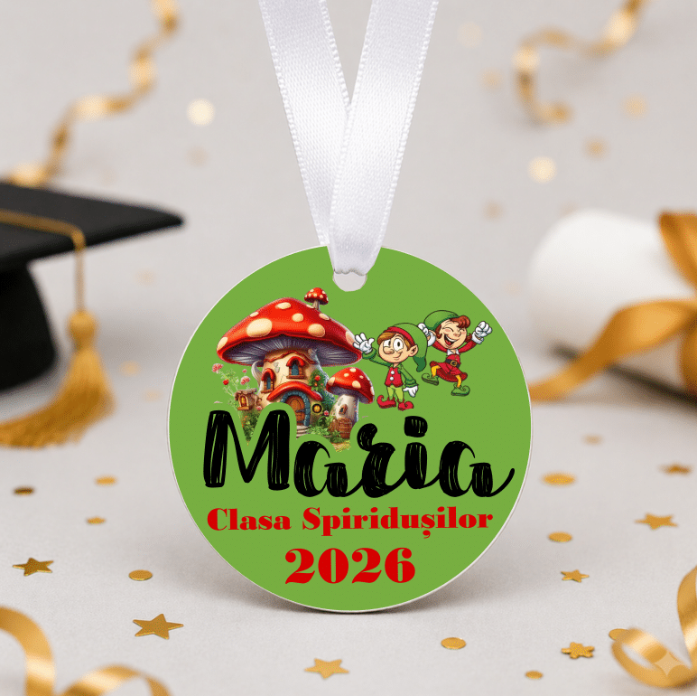 🎓 Fie că este vorba despre grădiniță sau școală, medalia poate fi personalizată cu numele copilului, grupa/clasa și anul promoției, devenind o amintire unică și valoroasă.
