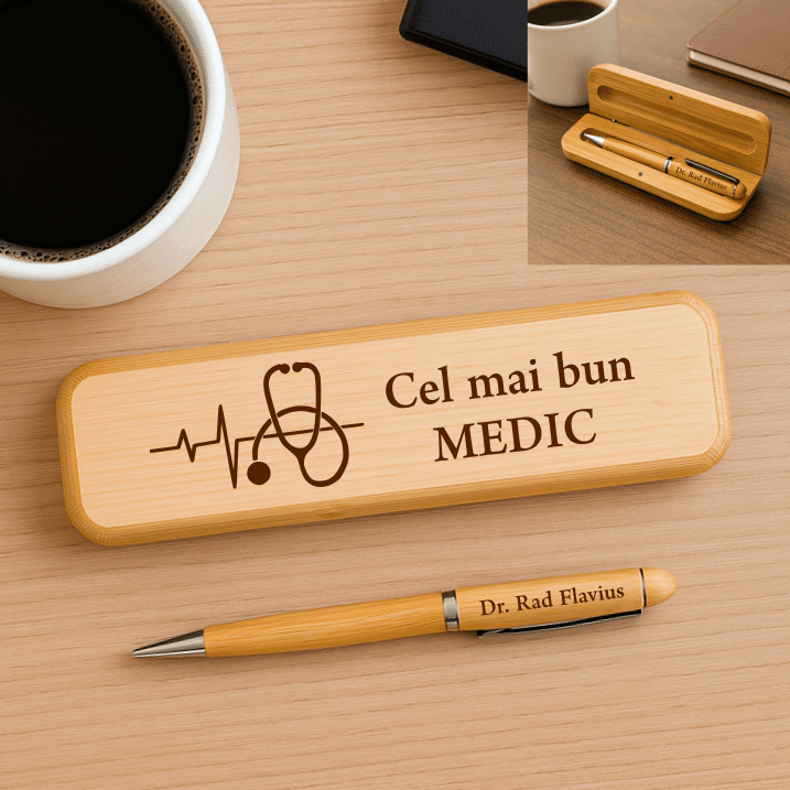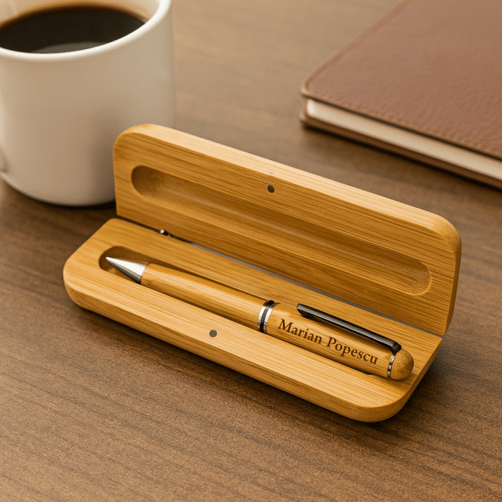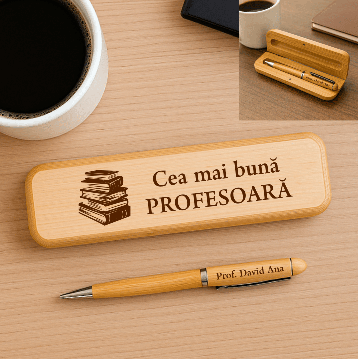 ✍️ Pix premium din bambus personalizat, ambalat în cutie individuală din lemn personalizata pe capac. Ideal pentru profesori, manageri, sefi, medici, cadouri corporate, aniversare sau de multumire. Dimensiuni cutie individual: 17.5cm X 5.7cm X 2.5cm.