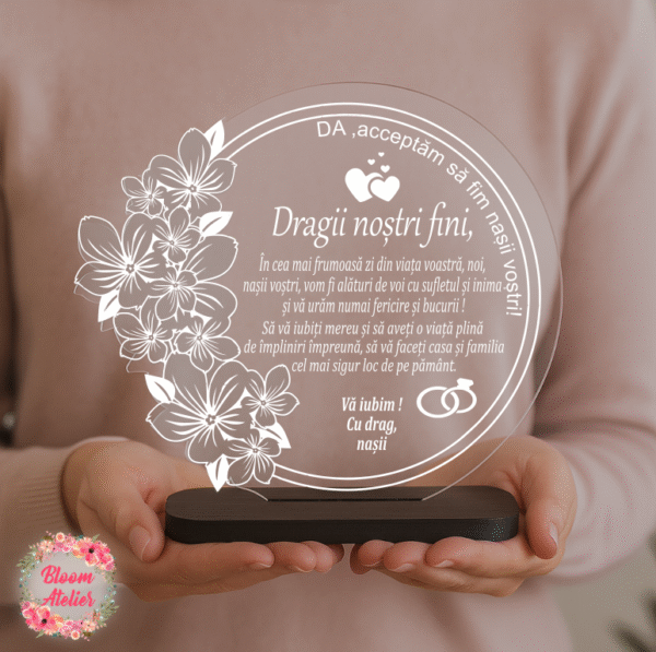Trofeu personalizat – cadou special pentru viitorii fini din partea nașilor, un simbol elegant al legăturii și al începutului unui drum frumos împreună.