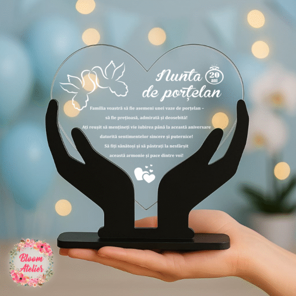 Celebrează iubirea și anii petrecuți împreună cu un trofeu personalizat, simbol al legăturii voastre. Cu un design elegant și mesaj ales de tine, acest trofeu devine o amintire prețioasă a unei povești de dragoste care continuă să inspire.