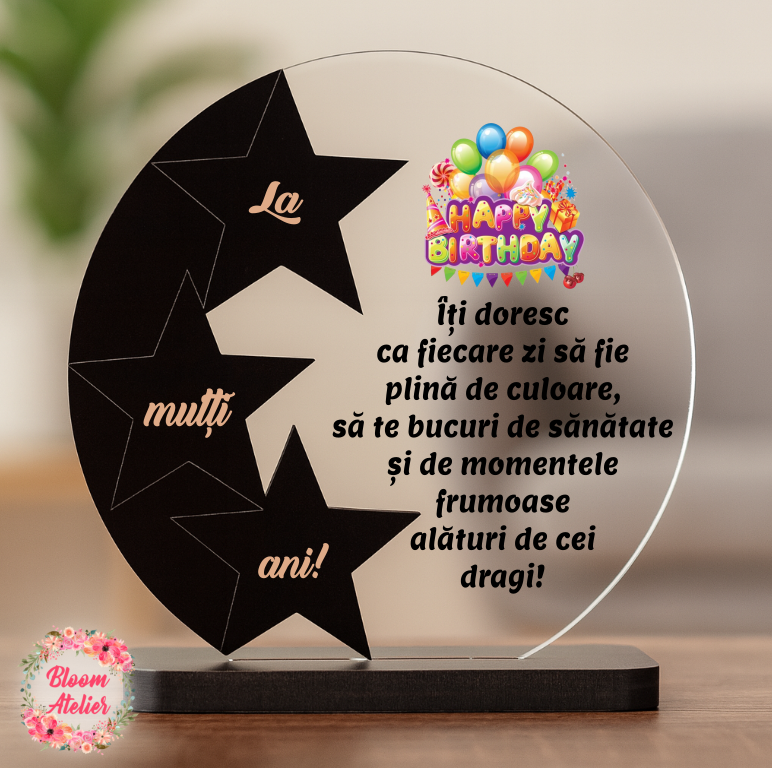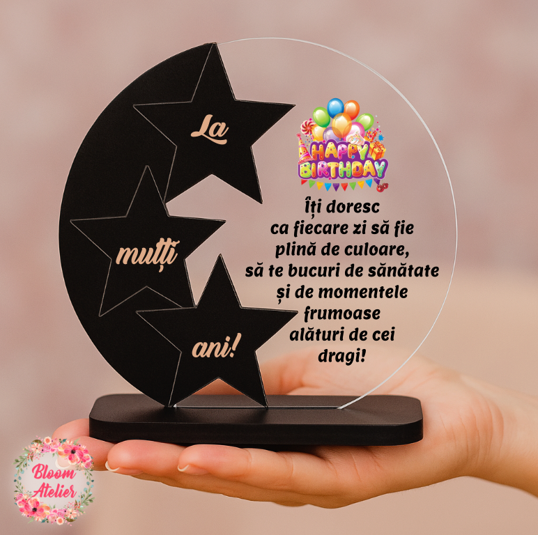 Trofeu aniversar personalizat – cadoul ideal pentru zi de naștere sau aniversare. Elegant, modern și plin de simbolism, acest cadou rafinat surprinde prin designul său unic și devine o amintire de neuitat.