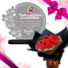 Aranjament in cutie cu flori nemuritoare (trandafir criogenat marime XL( aprox. 6.5 cm diametrul) si plante uscate. Nota: culoarea cutiei poate diferi in functie de stoc. Dimensiune aranjament: aprox. 24 x 20 cm.