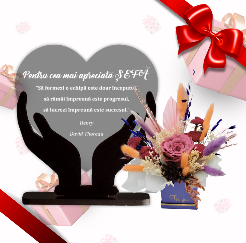 Placuta din plexiglass, cadou pentru cea apreciata sefa. Dimensiune placuta fara suport: 26 x 22 cm. Placuta este realizata din plexiglass 3 mm grosime. Suportul este realizat din lemn (culoare negru) aproximativ 2 cm grosime. Textul se imprima pe suprafata materialului.