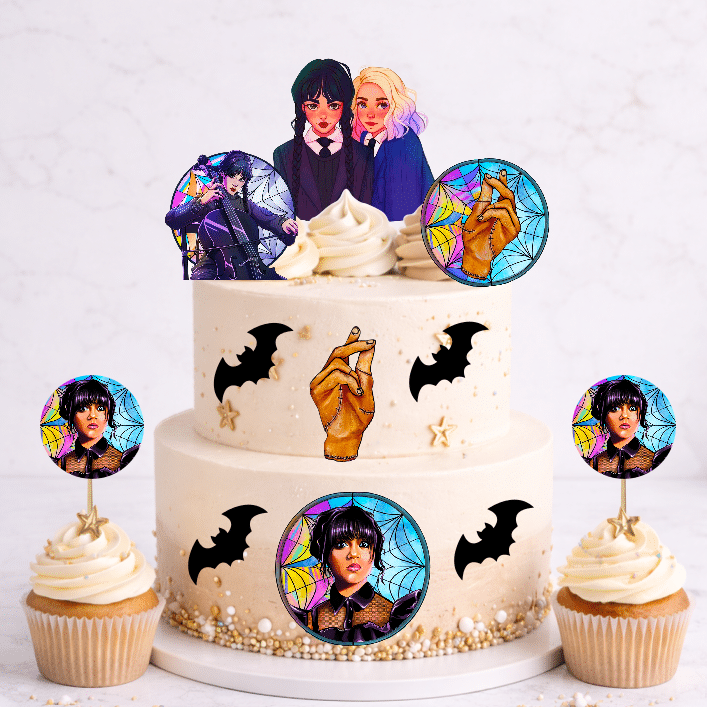 Transformă tortul aniversar într-un decor misterios și elegant cu figurinele pentru tort Wednesday. Aceste toppere tematice sunt perfecte pentru decorarea tortului la aniversarea copiilor și adolescenților și completează ideal o petrecere în tematica Wednesday Addams.