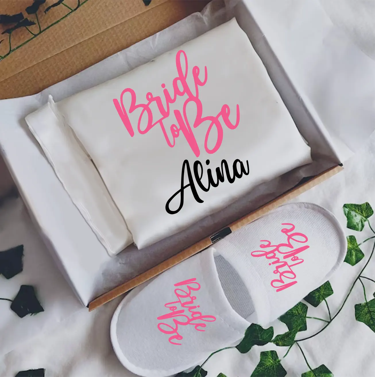 Asortează-ți halatul de mireasă cu o pereche de papuci personalizați pentru a completa ținuta ta specială!