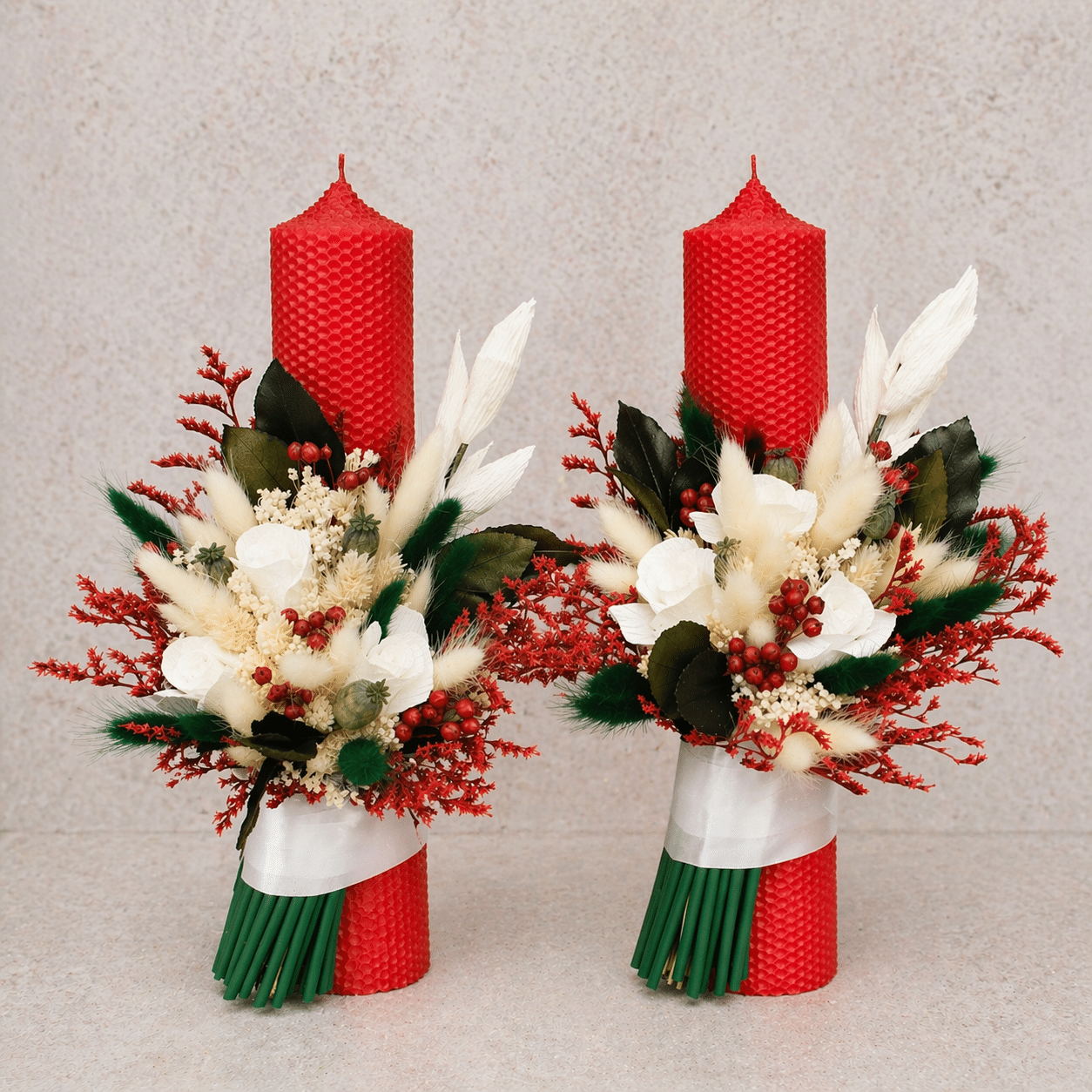 Alege un set de lumânări de nuntă tip fagure roșu, realizate din ceară naturală, ideale pentru ceremonia de cununie religioasă. Cu un design elegant și intens, aceste lumânări adaugă un accent rafinat și romantic momentului vostru special.