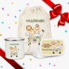 🎒 Set personalizat pentru copii – Rucsac textil + Cană metalică emailată + Caserolă lunch-box