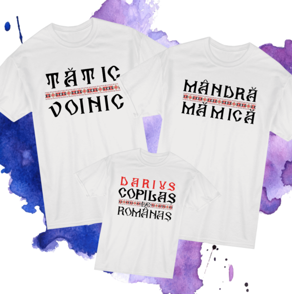 Pentru a plasa comada, selectati marimile dorite pentru fiecare membru in parte si introduceti textul pentru personalizare (precizati numele copilului).