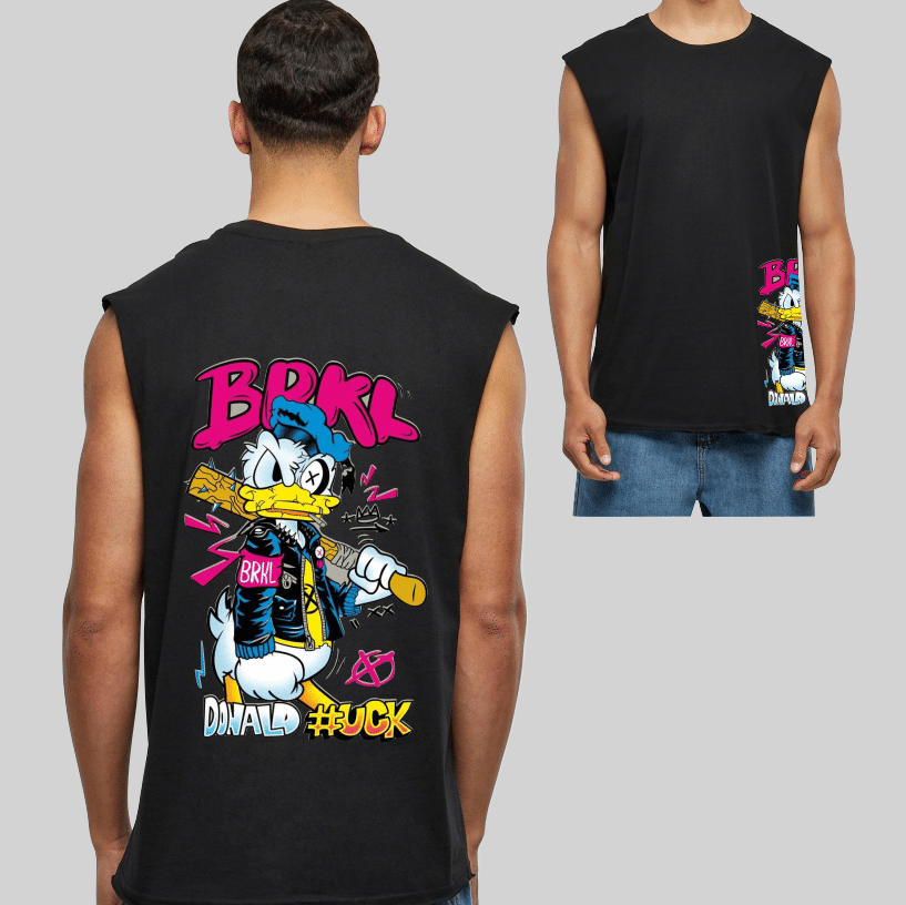 Tricou bărbat fara maneci din bumbac 100%, cu printuri cartoon integrate în țesătură, perfect pentru ținute casual și streetwear de vară. Croiala lejera și materialul natural asigură confort pe durata întregii zile, transformându-l într-o piesă esențială pentru garderoba de vară.