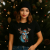 Tricou unisex negru cu motive de iarnă, realizat din bumbac moale și confortabil. Perfect pentru ținute casual de sezon sau ca dar tematic de Crăciun. Design versatil și modern, ușor de asortat în orice outfit festiv.