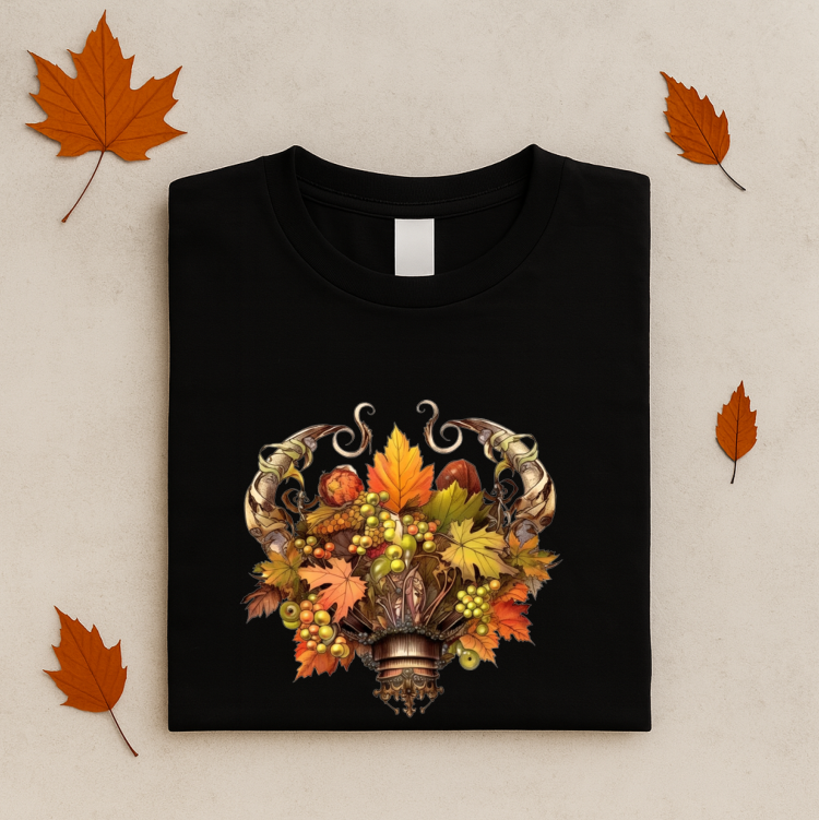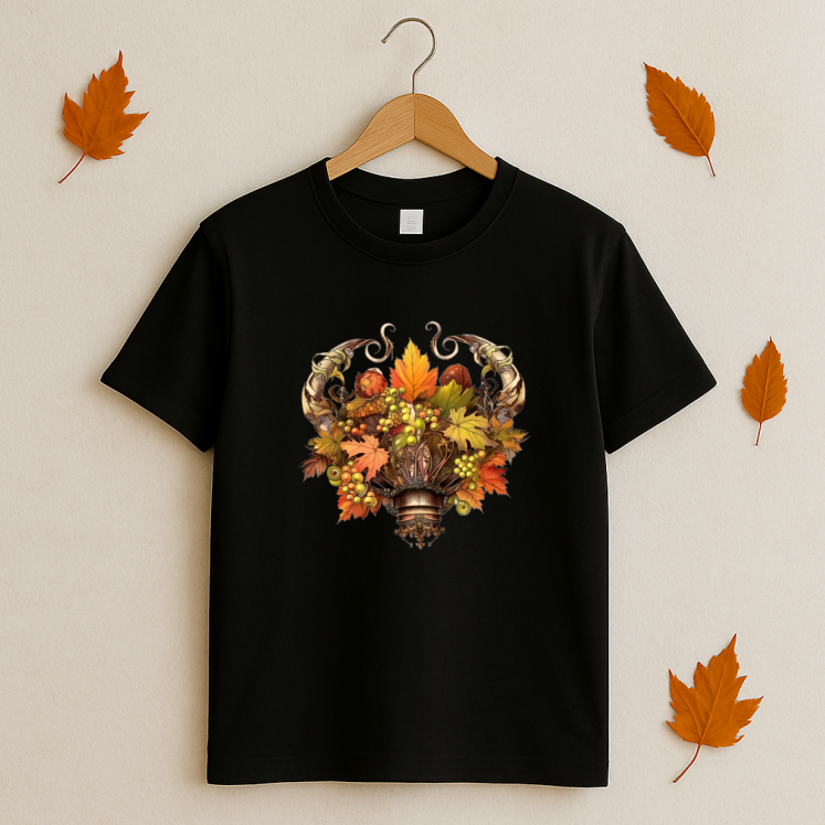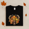 Tricou unisex negru cu motive de toamnă, confortabil și versatil. Perfect pentru ținute casual de sezon sau cadouri tematice.