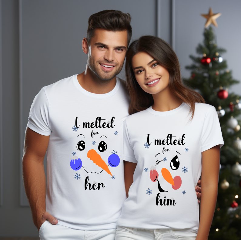 Set Tricouri Cuplu Craciun, Melted Snowman